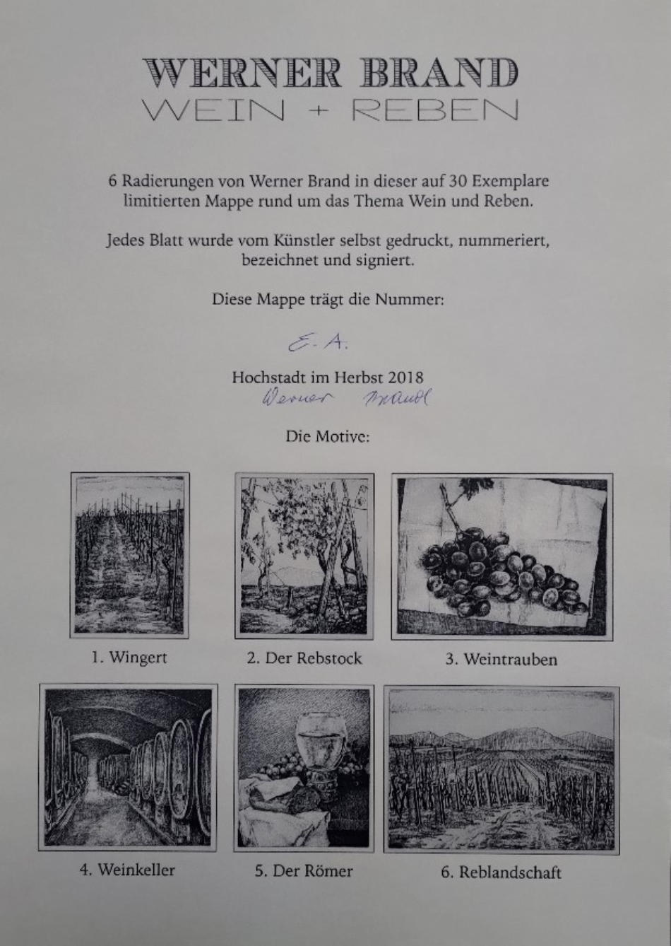 6 Radierungen von „Werner Brand“ zum Thema Wein und Reben